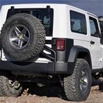 AEV 's achterbumper in combinatie reservewieldrager is de perfecte oplossing voor het dragen van al uw benodigdheden voor een fijne land- en offroad expeditie. Het systeem bestaat onder meer uit een sterke achterbumper, waarin dubbele 2,4-liter opslagtanks zijn ingebouwd; een uitkomst voor meerdaagse reizen. Ook is de bumper geschikt om eventueel AEV ‘Splash Guards’ te bevestigen.